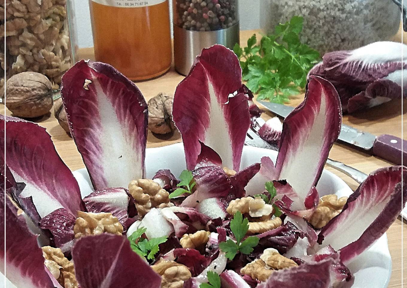 Salade d'endives rouges, noix et poire