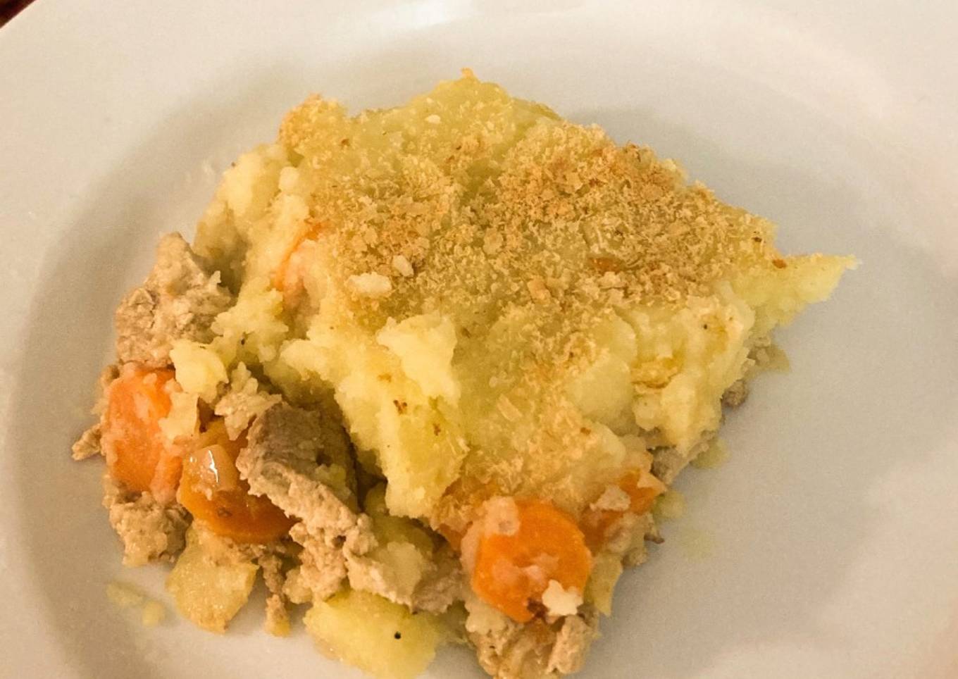Comme dans un hachis permentier, une délicieuse purée de pommes de terre vegan recouvrant une préparation à base de tofu fumé et de carottes.