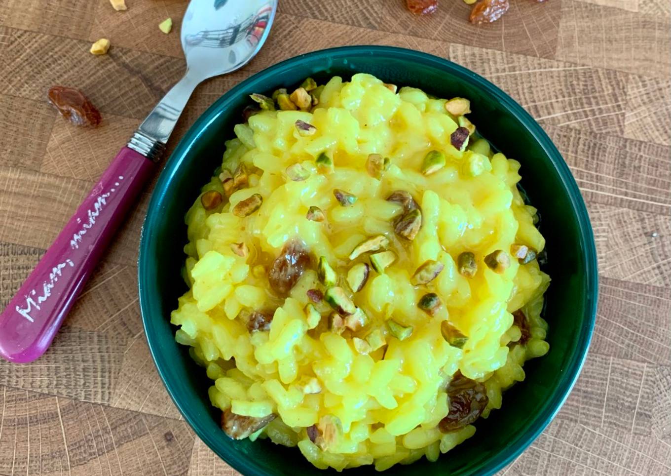 - Chauffer les laits et incorporer le riz cuit. Ajouter le safran. Laisser réduire de moitié